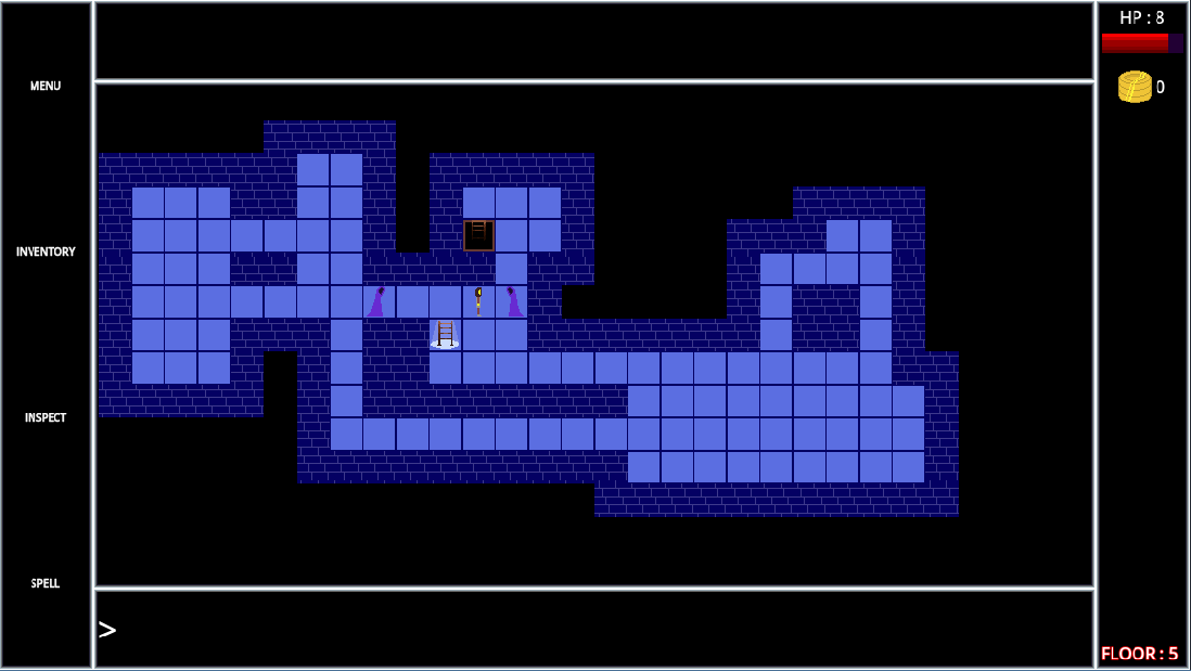 New floors will be randomly generated as you enter them. Enemies may spawn on floor generation. Attack enemies by walking into them.